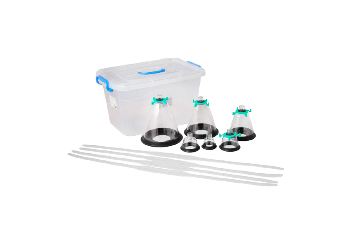 犬猫面罩用于连接动物与麻醉管路以及其他供气装置,每套包含1个收纳盒以及6个面罩(不同口径和深度)